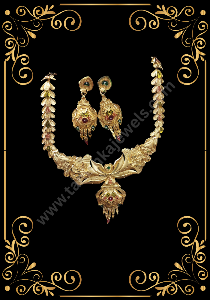 A majestic bridal necklace set handcrafted with intricate gold plating, designed to match your wedding grandeur. Perfect for the bride who wants to shine without the weight of real gold!